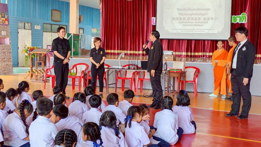พร้อมด้วยทีมวิทยากรครูและสามเณรนักเรียน ศูนย์วิทยบริการพระพุทธศาสนามหายานภาษาศิลปวัฒนธรรมจีน