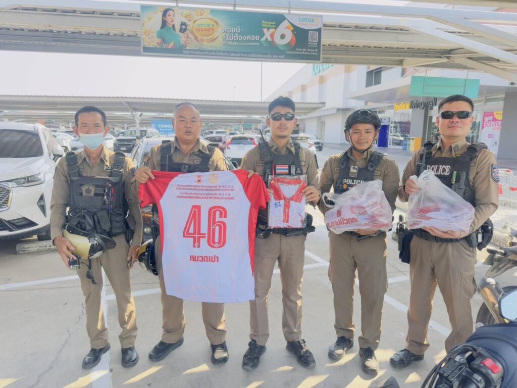 โดยทีมบุคลาการทางการศึกษาและสามเณรนักเรียนได้ออกแบบและผลิตเสื้อกีฬา เพื่อมอบให้กับเจ้าหน้าที่ตำรวจ